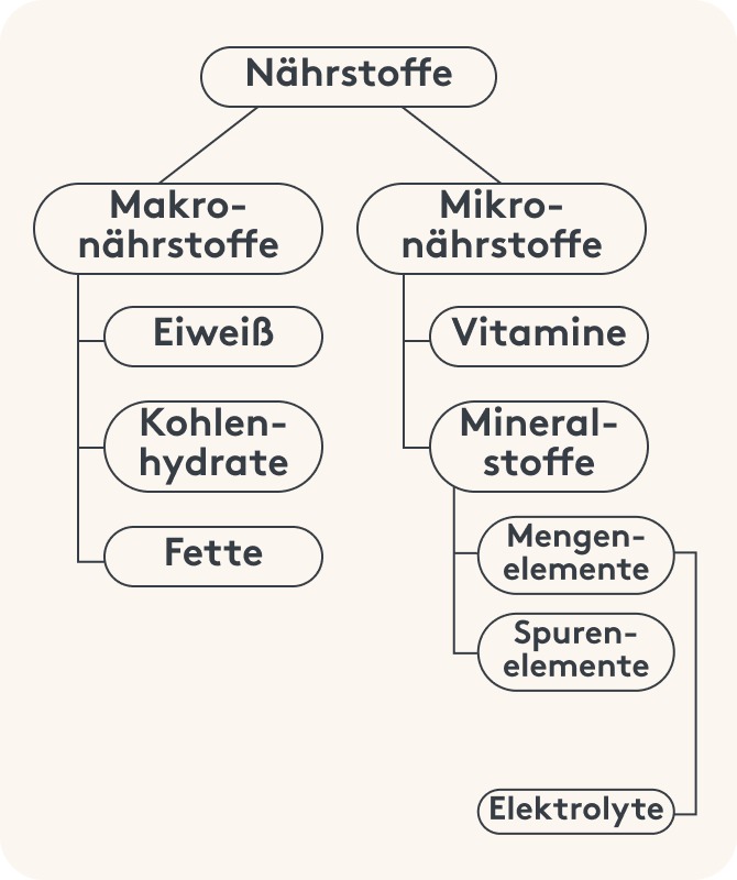 Los macronutrientes son componentes alimenticios que tu cuerpo necesita en grandes cantidades para proporcionarte energía. Éstos incluyen carbohidratos, proteínas y grasas. El cuerpo necesita cantidades más pequeñas de micronutrientes, que incluyen vitaminas y minerales. Sin embargo, son importantes porque, entre otras cosas, participan en el metabolismo y apoyan la función del sistema inmunológico. Una dieta variada es importante para proporcionar al cuerpo todos los nutrientes que necesita.