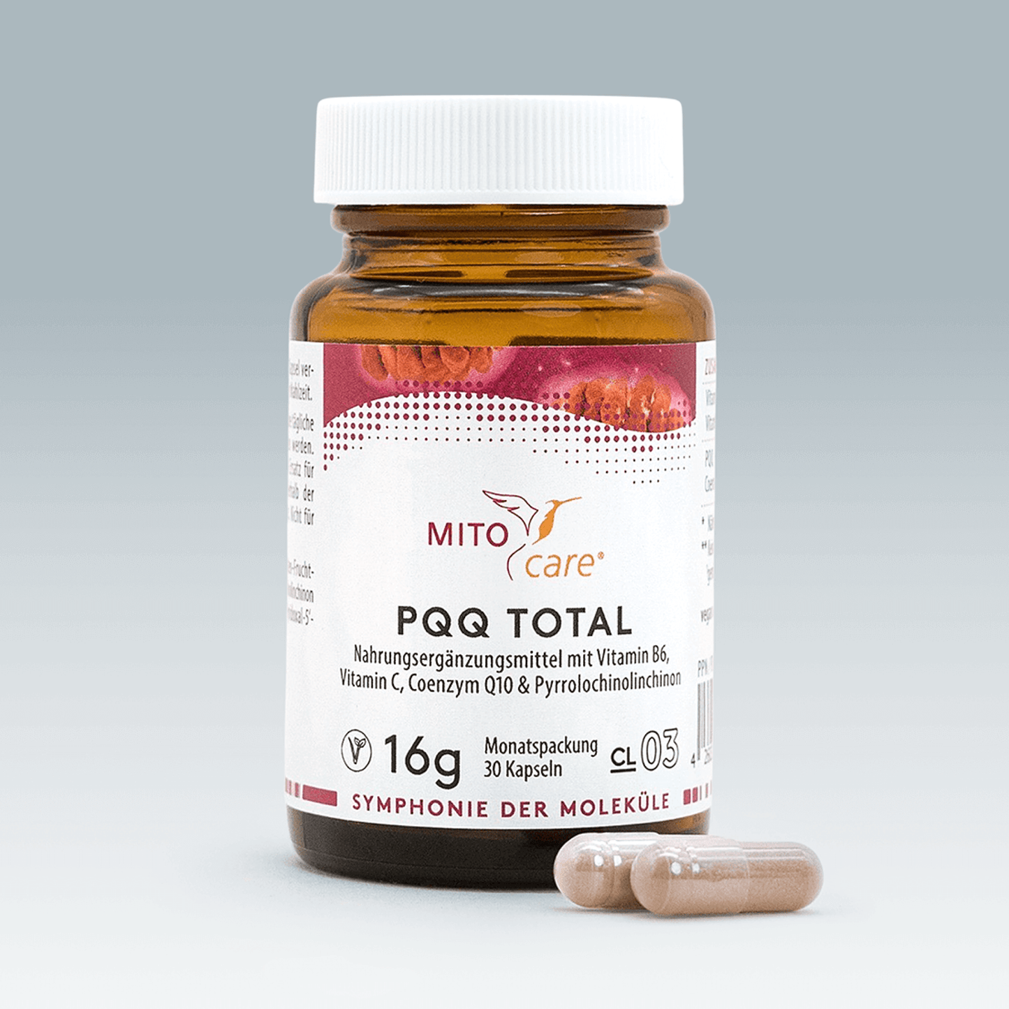 - La coenzima Q10 es especialmente importante para la cadena respiratoria y la producción de energía. Sin embargo, si su cuerpo lucha cada vez más contra el estrés radical, la coenzima Q10 ya no puede regenerarse tan rápidamente. Entonces tiene sentido una combinación de ambos micronutrientes: PQQ apoya el proceso de regeneración porque puede regenerar directamente la coenzima Q10.