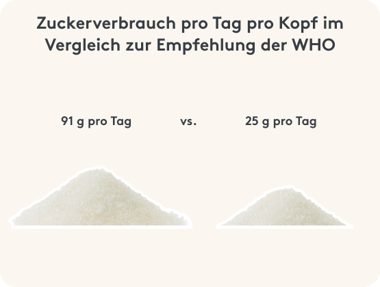 Der Pro-Kopf-Verbrauch lag im Wirtschaftsjahr 2022/23 bei 33,2 Kilogramm Zucker.¹ Das entspricht einer Menge von 91 Gramm am Tag.