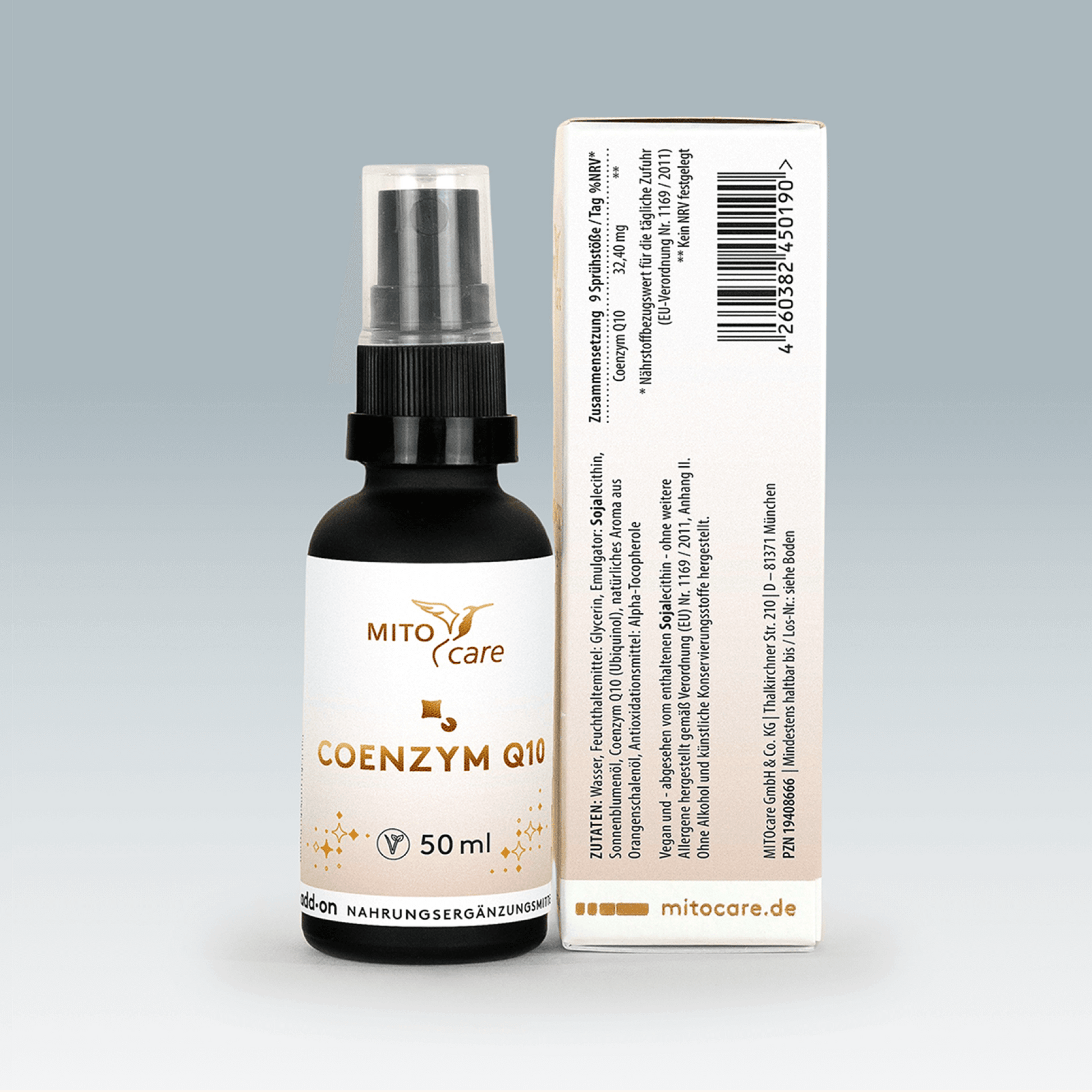 Unser MITOcare add·on Coenzym Q10 LIPO Spray enthält den patentierten Markenrohstoff KANEKA UBIQUINOL™, welcher hier in mikroskopisch kleinen Partikeln vorliegt. Dies ermöglicht es, dass die Aufnahme bereits in der Mundschleimhaut beginnt. Die Bioverfügbarkeit ist so signifikant höher als bei einem Standardkapselprodukt. Weder Süßungsmittel noch Alkohol oder Kaliumsorbat kommen zum Einsatz. Das gesamte Produkt wird zu 100 % aus natürlichen Rohstoffquellen gewonnen, wobei das natürliche Orangenschalenaroma für einen angenehmen Geschmack sorgt.