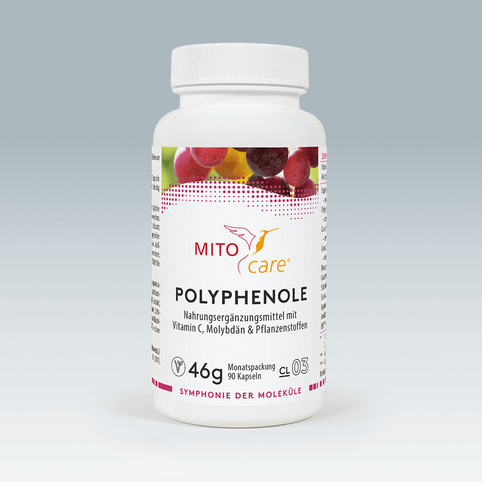 Polyphenole vereint 12 wertvolle sekundäre Pflanzenstoffe wie zum Beispiel Curcuma, Schisandra, OPC, Ingwer, Amlabeeren, Granatapfel etc. und unterstützt durch Vitamin C das Immunsystem3. Das im Produkt enthaltene Spurenelement Molybdän leistet seinen Beitrag in der Verstoffwechselung der schwefelhaltigen Aminosäuren.4 Die westliche Ernährung und der Kontakt mit Chemikalien können hier Grund für einen Mehrbedarf sein.