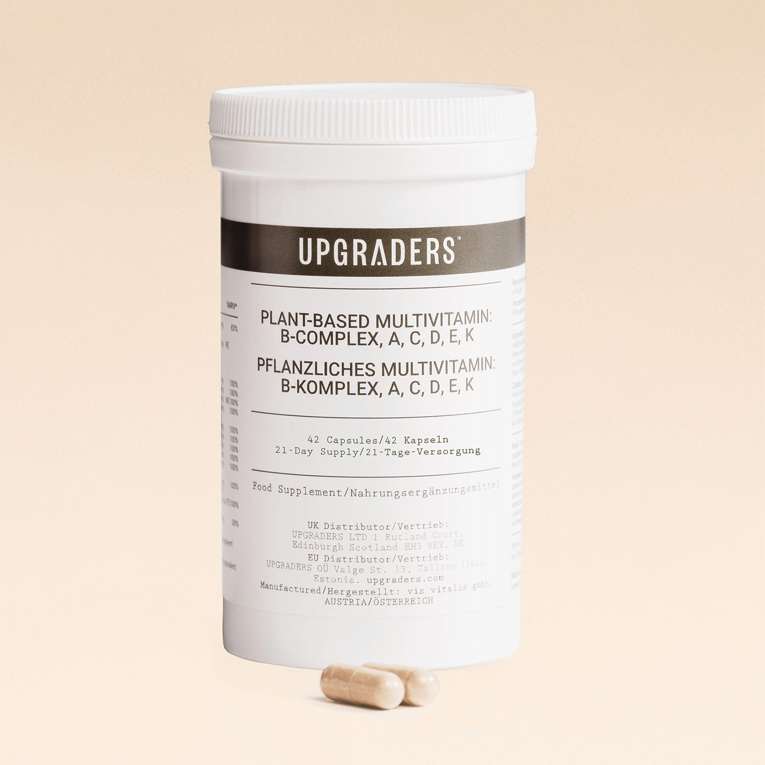 - Pflanzliches Multivitamin: B-Komplex, Vitamin A, C, D, E, K