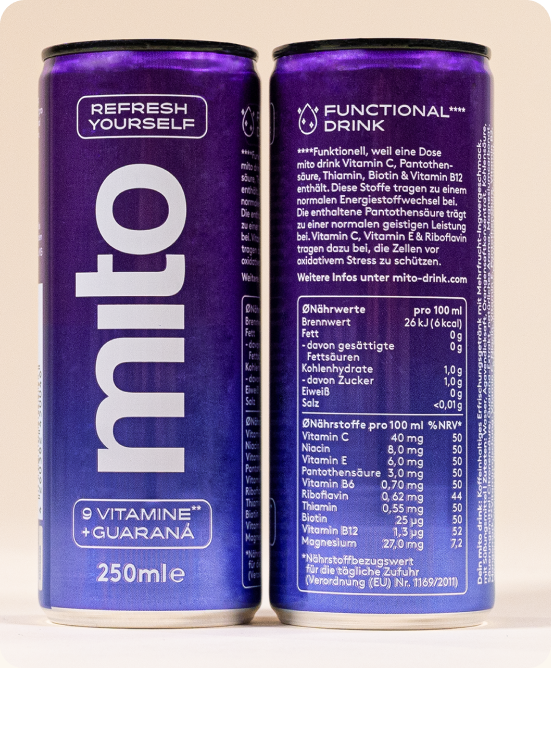 We present the optimized recipe for our mito drink: even fruitier in taste, with a more subtle ginger note, more magnesium, and guaraná from certified organic cultivation. The smart soft drink for an energy boost for everyday life and sports—a targeted supply of micronutrients at the cellular level.