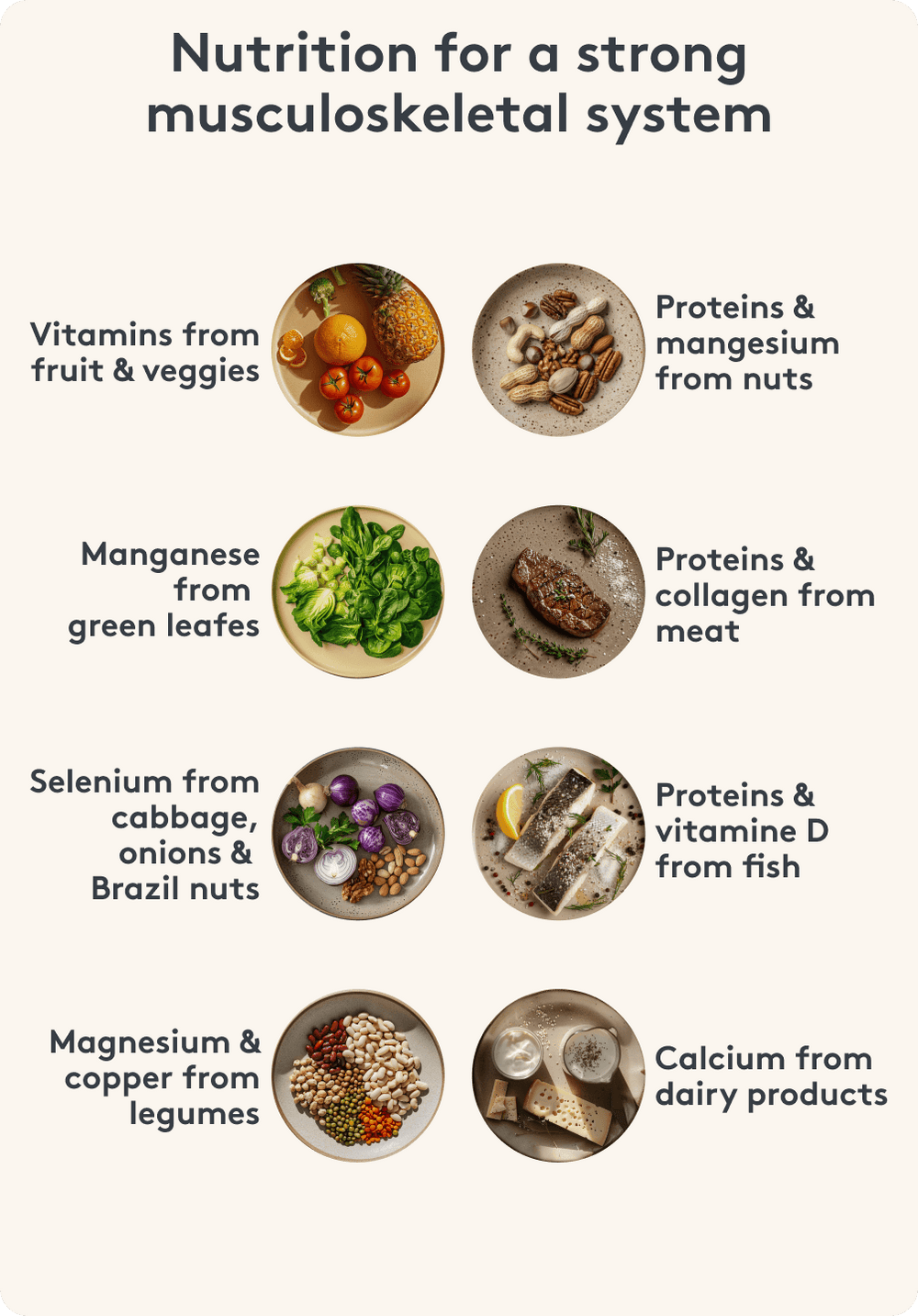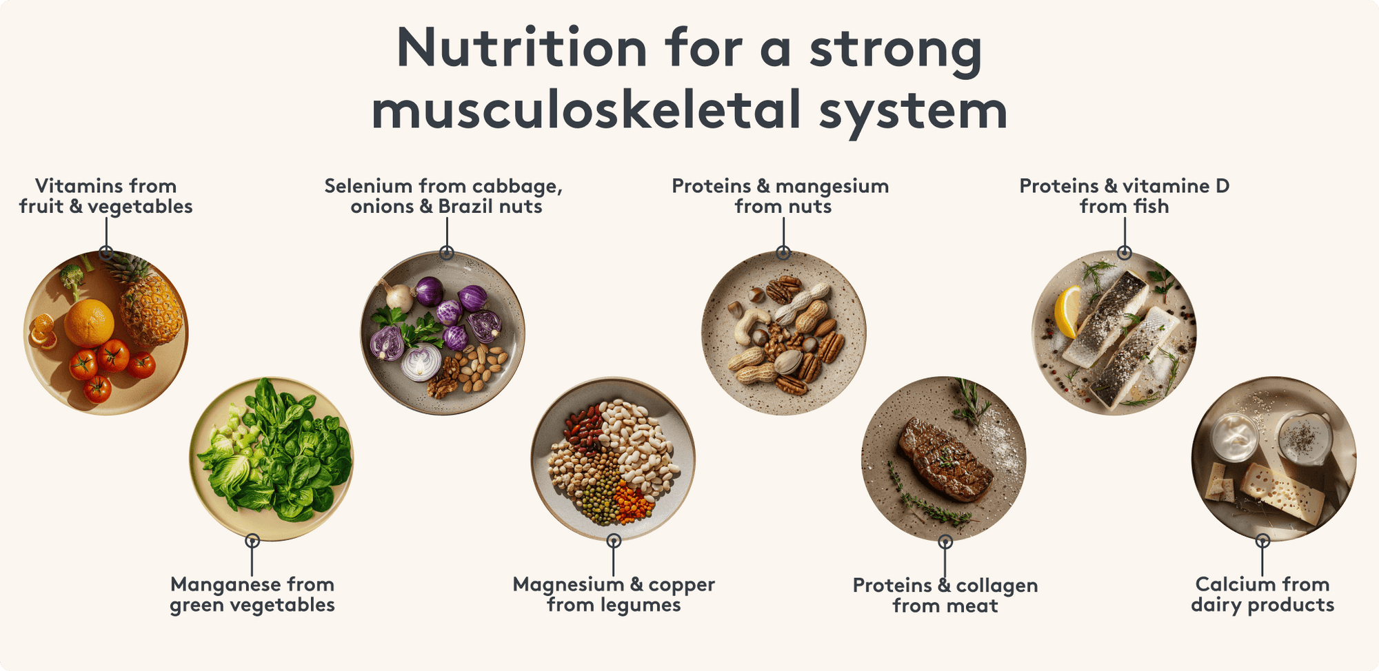 Alongside exercise, nutrition is the key to strong tendons, strong bones and supple ligaments. A balanced diet provides your musculoskeletal system with minerals and trace elements.