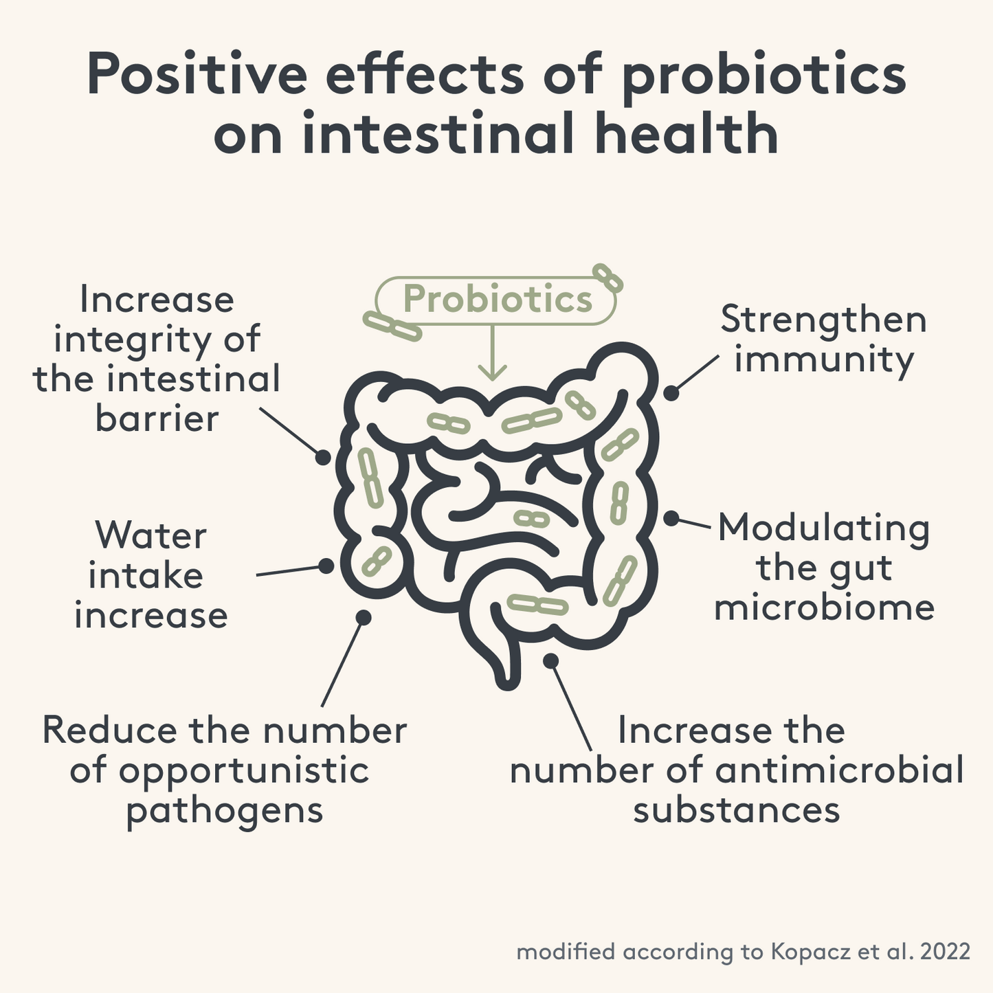 Probiotics are also available in supplement form. Regardless of how you take them, probiotics ensure optimal gut function, the intestinal barrier functions as it should, and support the natural balance of the gut microbiome.