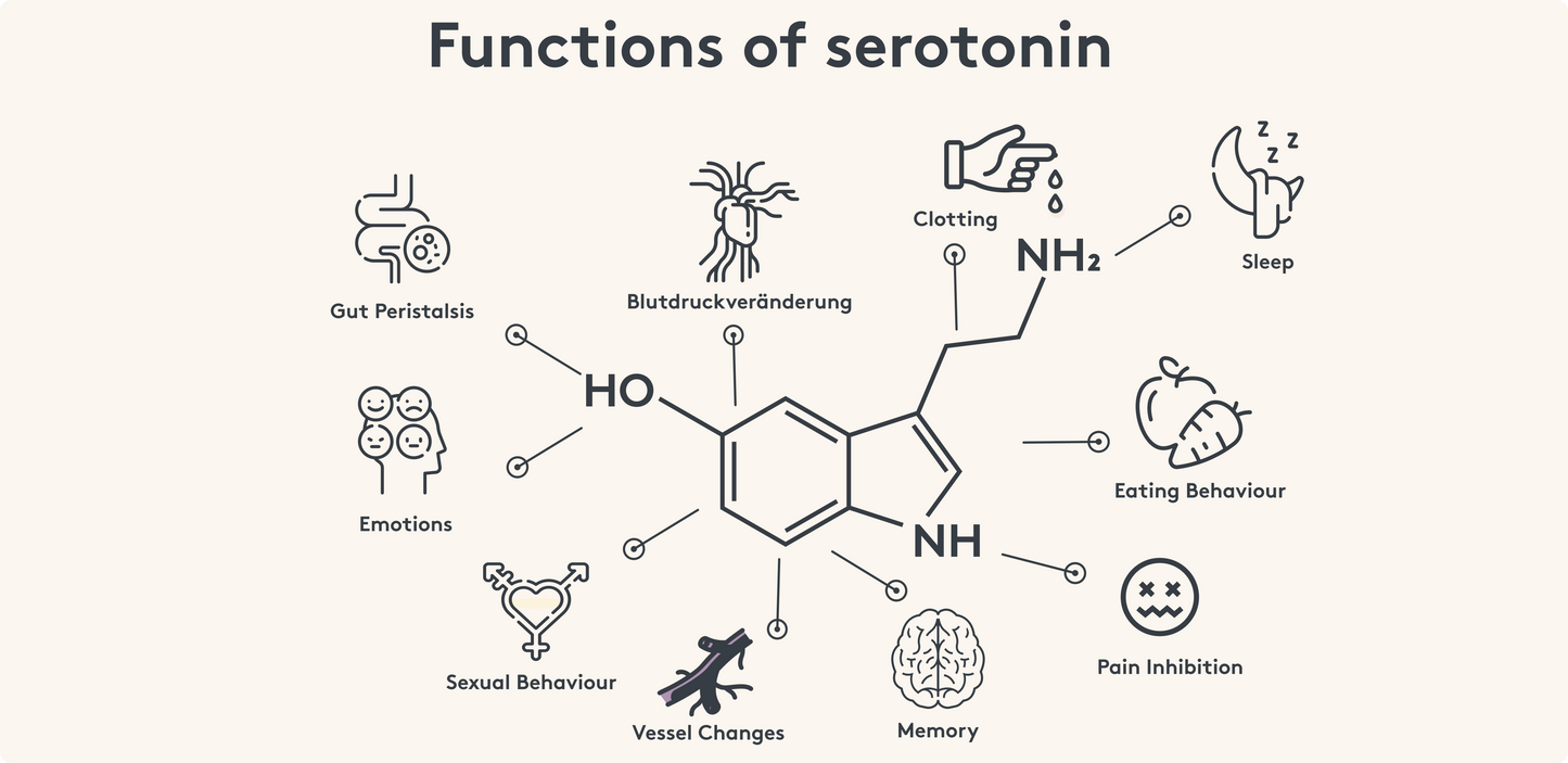 The neurotransmitter serotonin has an effect wherever a corresponding receptor is found. It not only ensures a good mood and restful sleep, but also takes on the following functions in the brain and spinal cord: