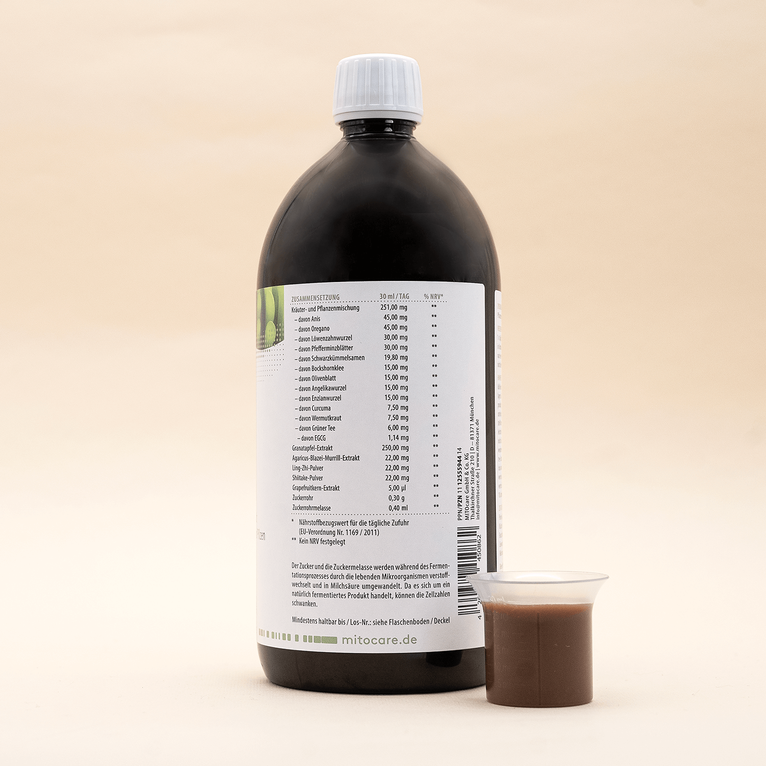 Our natural product preparation Dysbiosan contains over 24 strains of effective microorganisms in high dosage, as well as bitter substances, herbs and plant extracts.