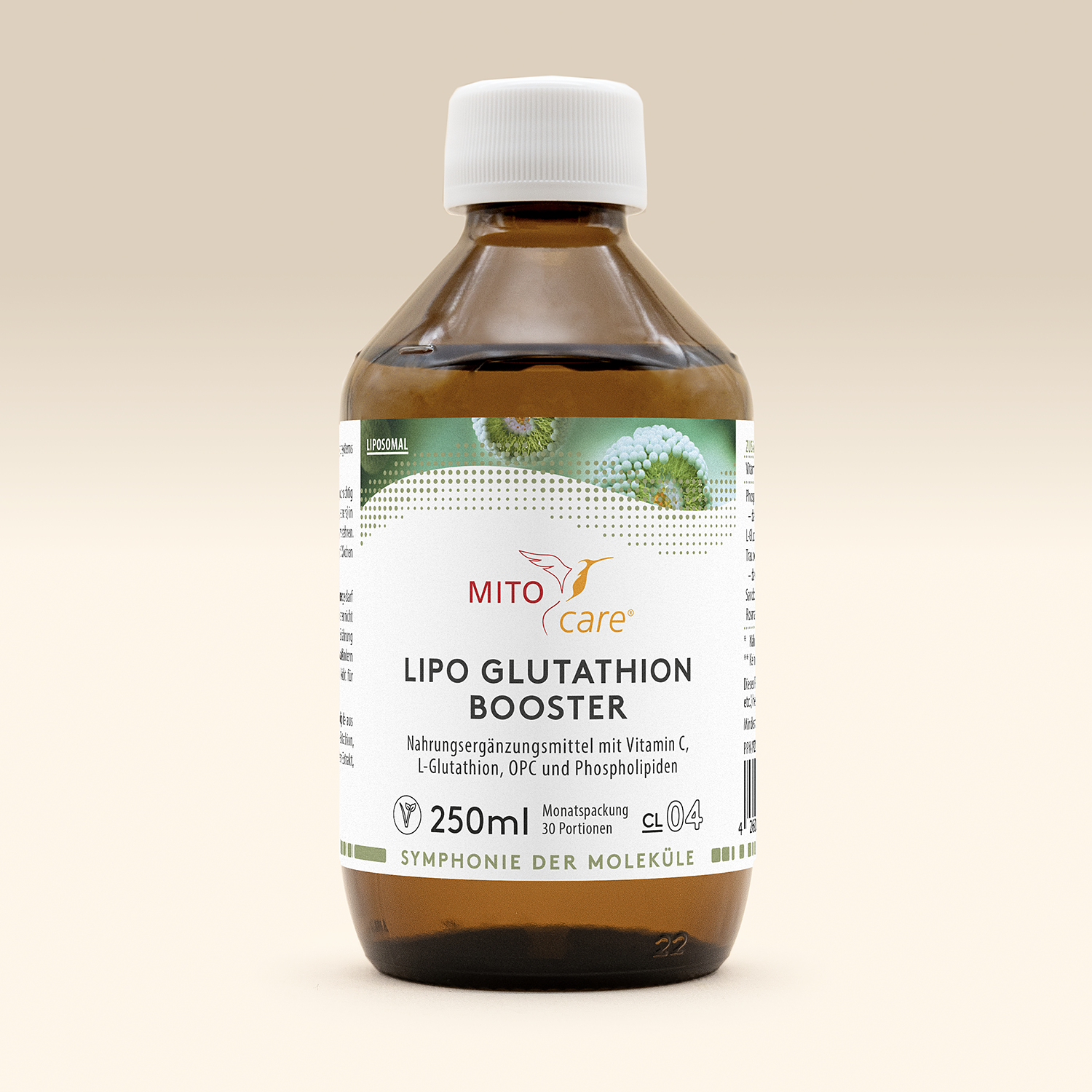 Our innovative LIPO Glutathione Booster features three valuable substances – L-glutathione, OPC and vitamin C – enclosed in liposomes. Phospholipids are also the main components of the body's cell membranes and ensure their cohesion.