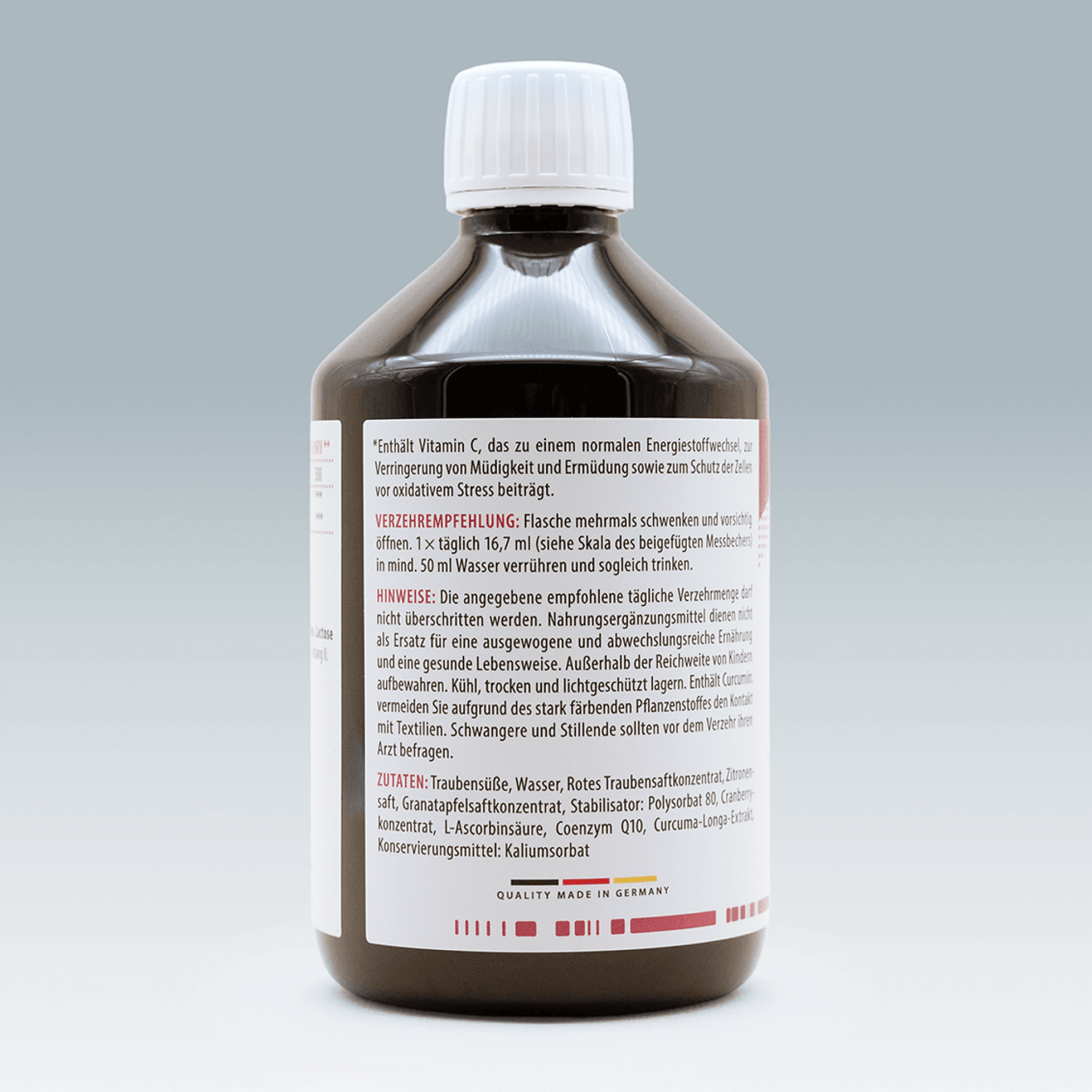 Shake bottle gently several times and open carefully. Some foam may form at first opening. Stir 16.7 ml (equals ~ 2 tablespoons) 1 × per day into at least 50 ml of water and drink immediately.