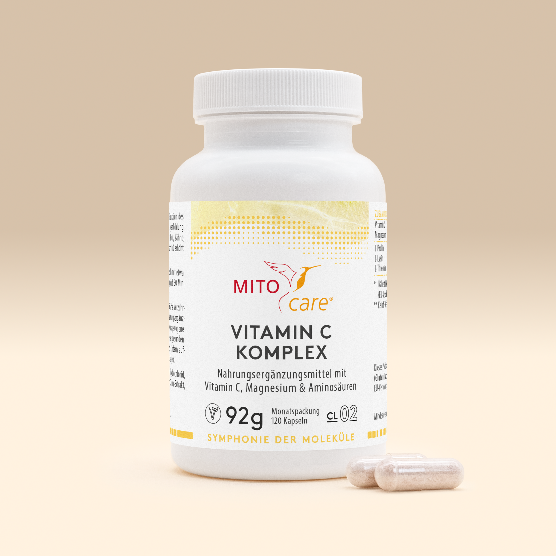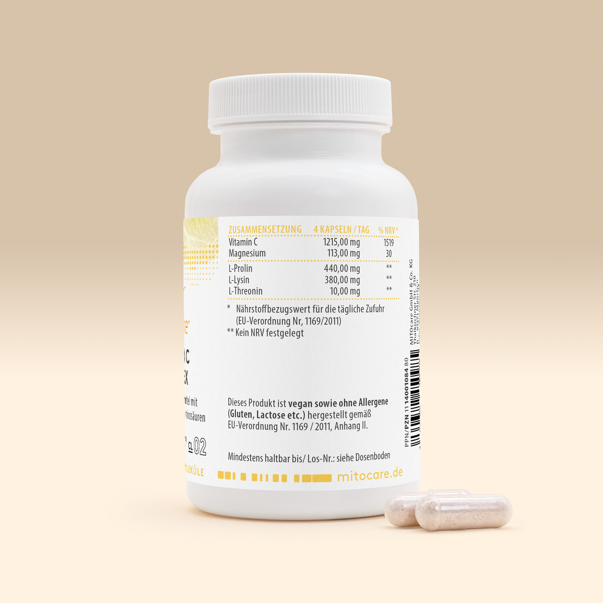 For our Vitamin C Complex, we use only valuable nutrients and plant extracts – compressed in a vegan capsule shell made of pullulan. We consciously avoid unnecessary fillers and additives.