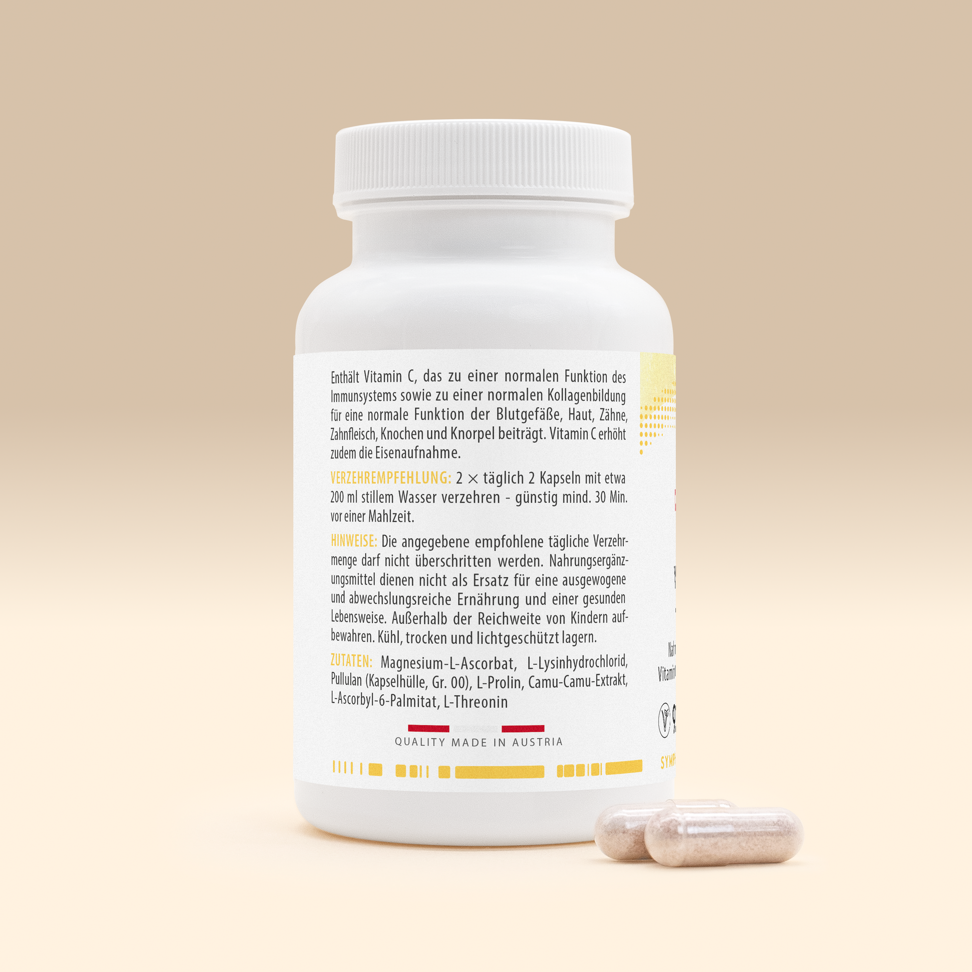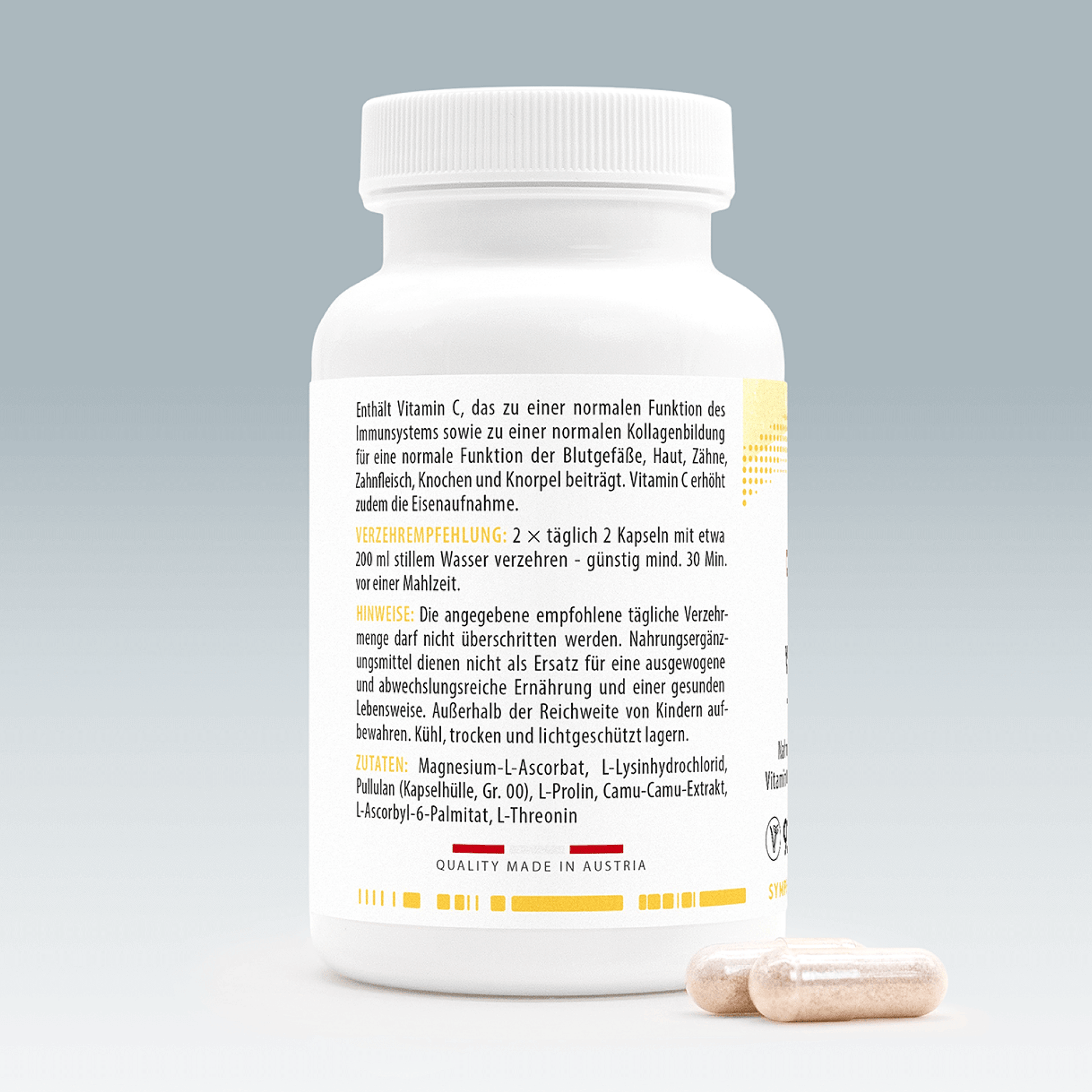 | Vitamin C (Magnesium L-Ascorbate, Camu Camu-extract, Ascorbyl palmitate) |