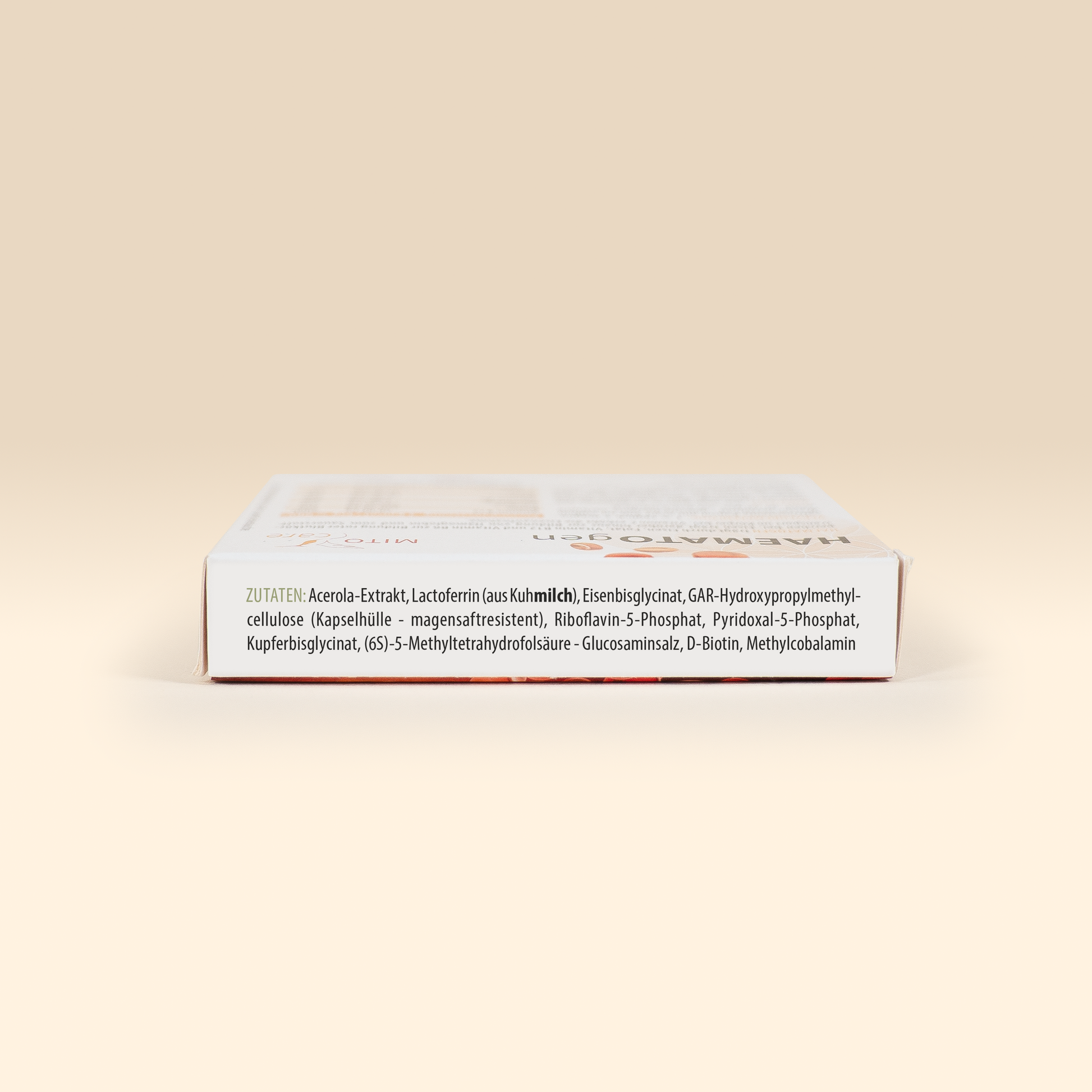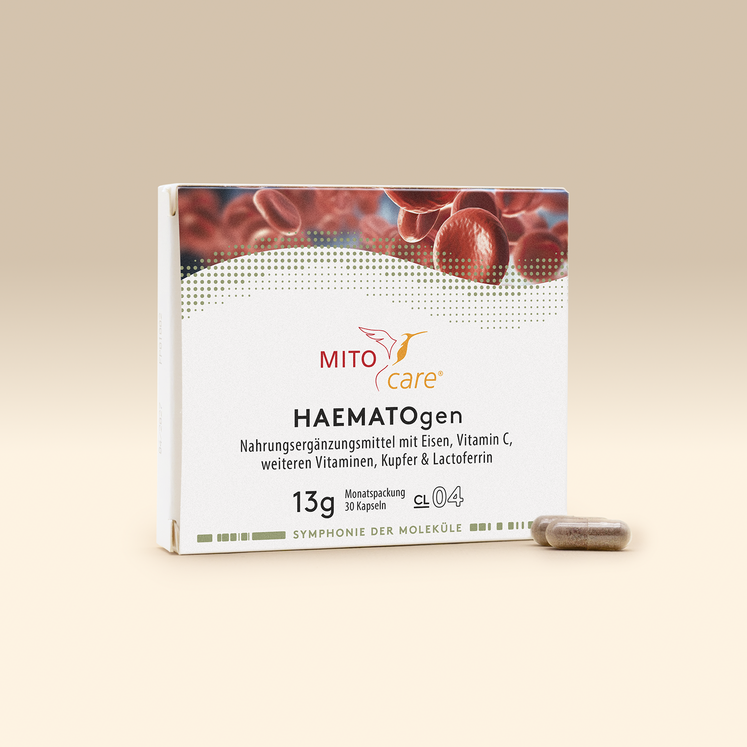 Für die Bildung roter Blutkörperchen benötigt der Körper diverse Mikronährstoffe. Das Produkt HAEMATOgen vereint besonders wertvolle und aufeinander abgestimmte bioaktive Stoffe für eine gesunde, funktionierende Blutbildung1,2 und einen gesunden Eisenstoffwechsel8.