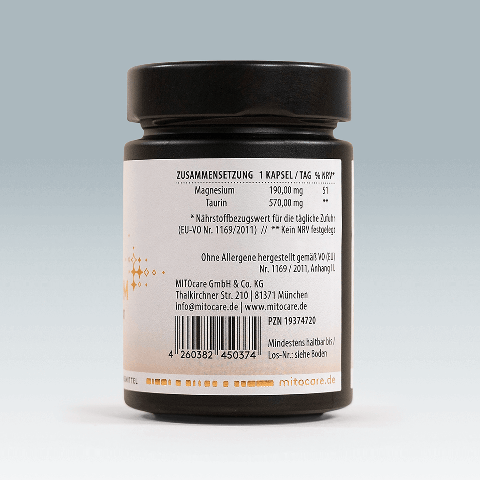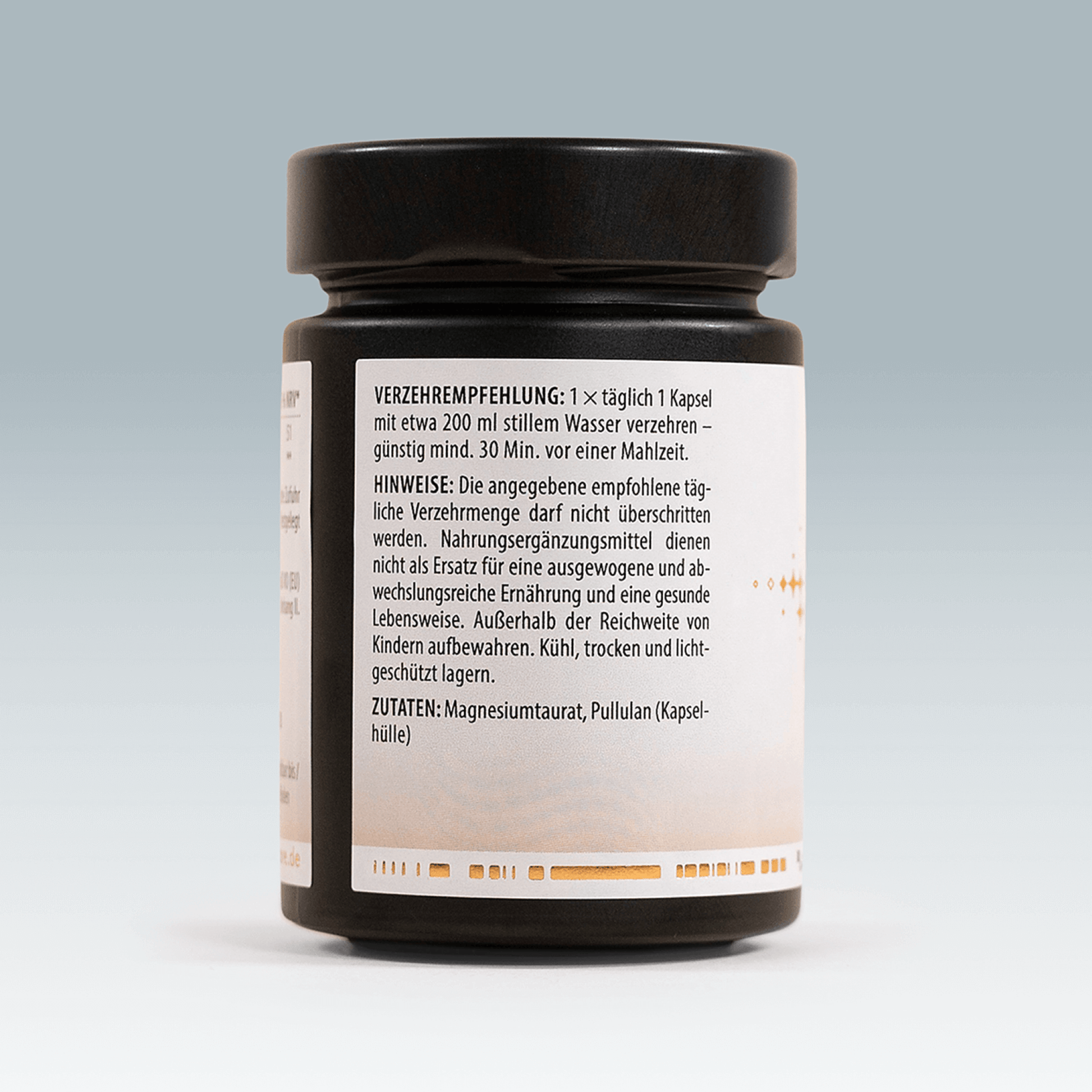 Zutaten: Magnesiumtaurat, Pullulan (Kapselhülle Gr. 00)