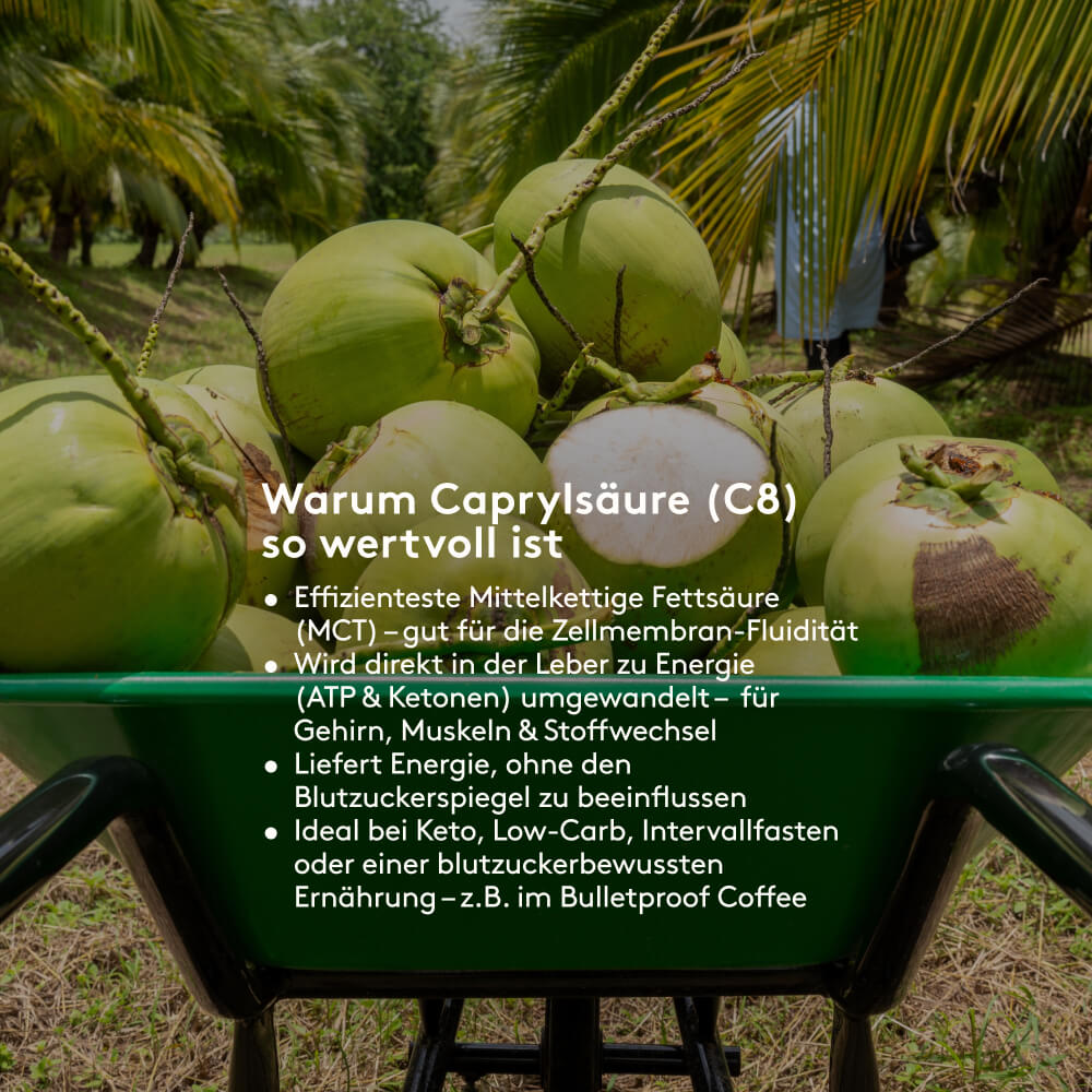 100% reines MCT C8 Öl aus Bio-Kokosöl
