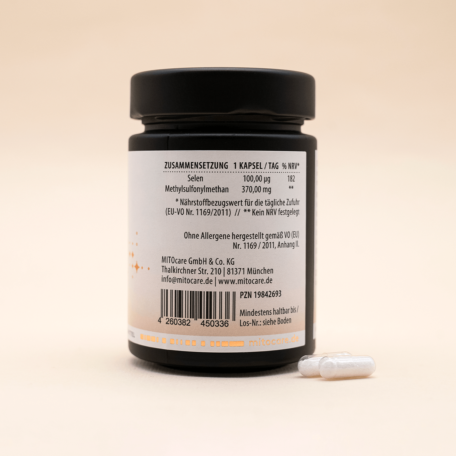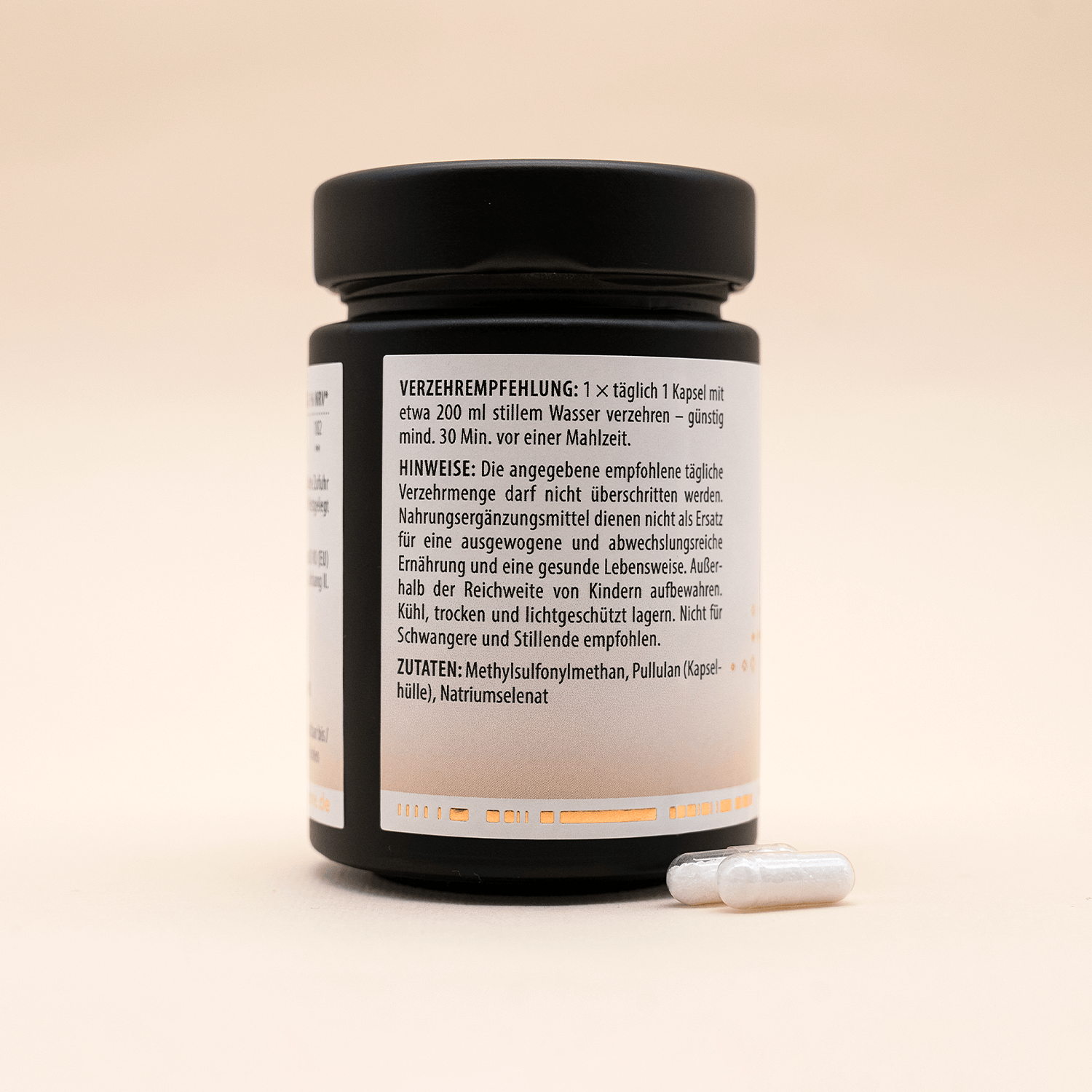 Zutaten: Methylsulfonylmethan, Pullulan (Kapselhülle Gr. 1), Natriumselenat